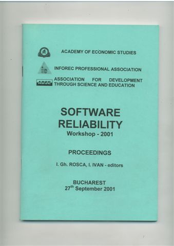 | Ion IVAN, Ion Gh. ROSCA (editors) - Proceedings of Workshop on Software Reliability, Editura INFOREC, Bucharest 2001,93 pg, ISBN 973-8360-00-5