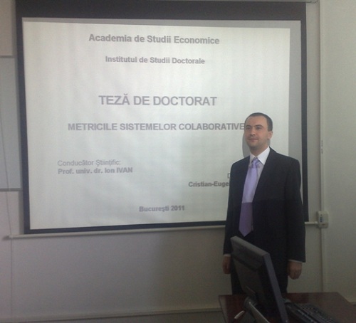 Cristian CIUREA a lucrat pe metrici ale sistemelor colaborative si a adus contributii originale,iar verificarea tuturor ipotezeklor s-a efectuat pe o aplicatie ce a rulat efectiv intr-o banca, spre beneficiul acesteia.