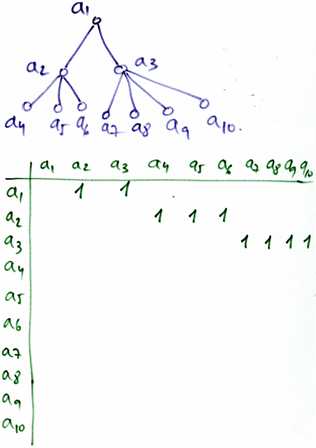 | Pentru graful cu nodurile a1, a2, a3,..., an, se construieste o matrice boole4ana cu n linii si n coloane.