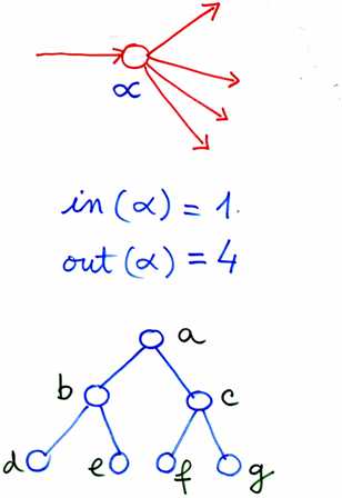 | Reprezentarea folosind functiile in() si out(0 arata ca un arbore are: - un nod radacina R pentru care in(R)=0 si out(R)>0 - noduri intermediare xi pentru care in(xi)=1 si out(xi)>0 - noduri frunza Fi pentru care in (Fi)=1 si out(Fi)=0. |