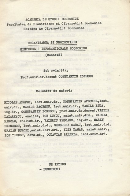 *** - Organizarea si proiectarea sistemelor informationale economice (macheta), Tipografia ASE, Bucuresti, 1982, cd. 226bis, 632pg.