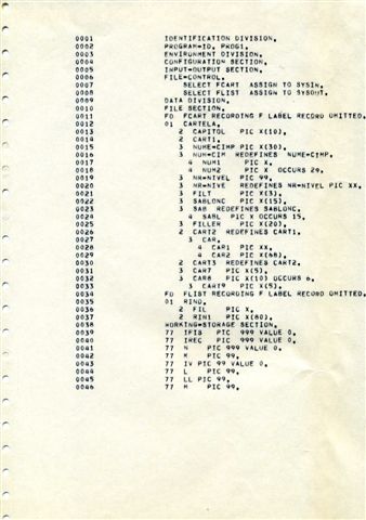 Delimitatorul de sfarsit era o cartela cu o structura aparte.