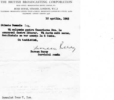 | Cand prin 1965 sau 1964 postul BBC a organizat un concurs am trimis si eu ceva despre Shakespeare. |