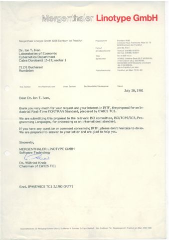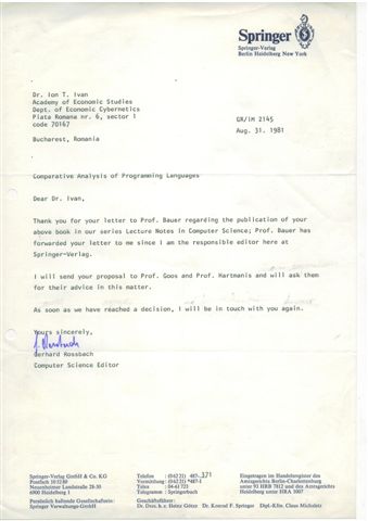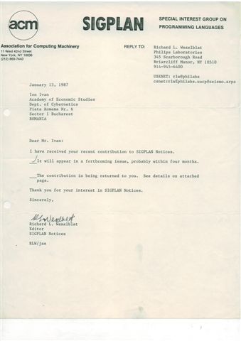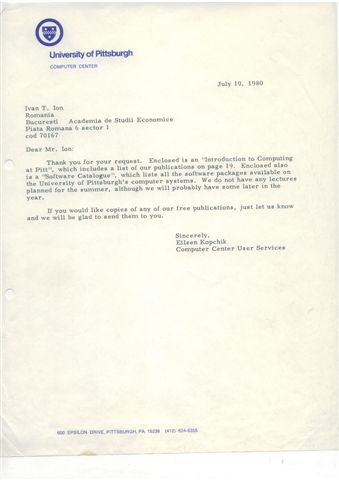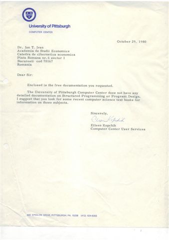 Si marea Universitate din Pittsburg a raspuns numeroaselor solicitari. In 1987 am dat la DCA cam 300 kg de documentatie adevarata despre compilatoare, intrucat nu se mai intrezarea nicio sansa de a iesi din ignoranta.