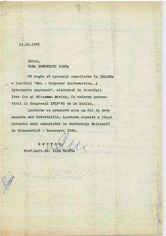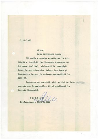 Scrisoarea catre vama era destul de seaca si civilizata. Nu a existat rector sa refuze o trimitere.Nu am avut eu atatea materiale cat ar fi fost ei in stare sa aprobe.