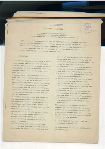 Materialul publicat in NORTH HOLLAND de la Conferinta de la Viena, pentru care s-au intrunit unii si in loc sa se bucure s-au zburlit de ce nu li s-a cerut avizul, de parca ei trebuiau sa verifice de la definitia vacii pe care o dedeau curs-de-curs, cum este cu indicatorii de calitate software. Avizul era dat de cei de la ICI, unde intr-adevar se studia calitatea software, prin Ileana Trandafir si Balog. | aaaaaaaaaaaaa