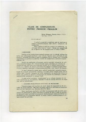 Marian MACESANU, Romulus ARHIRE, Ion IVAN - Clase de complexitate pentru produse program, Buletinul Roman de Informatica, vol. 6, nr. 1, 1985, pg 63 - 68
