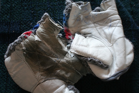 | Manusa din stanga s-a deteriorat pentru ca stratul care acopera pielea naturala este prost depus, fara a se respecta cerintele. El a devenit numai o pelicula care se detasaza de piele si la cea mai mica frecare se desprinde de pe piele.