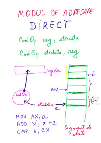 | Referire registri | prin nume AX, BX,CX,DX,SI,DI | prin tipul de data definit |