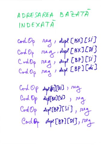 | depl[BP][SI] | Adresare bazata indexata | 010 |