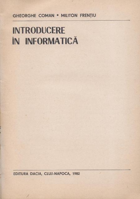 Gheorghe COMAN, Militon FRENTIU - Introducere in informatica, Colectie Informatica, Editura Dacia, Cluj-Napoca, 1982, 213pagini