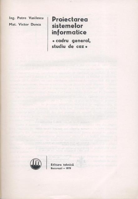 Petre VASILESCU, Victor DUNCA - Proiectarea sistemelor informatice, cadru general, studiu de caz, Editura tehnica, Bucuresti, 1979, 324pg