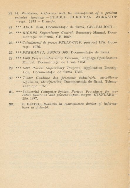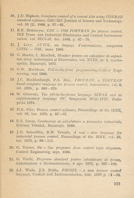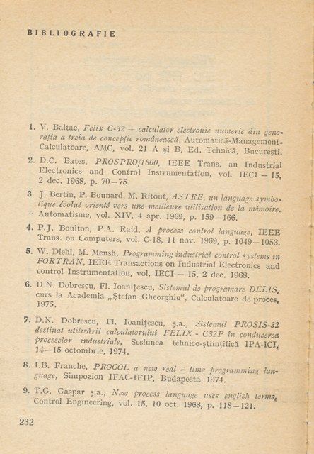 Dan N. DOBRESCU, Florentina IOANITESCU - Limbaje de programare pentru calculatoare de proces, Editura ALBATROS, colectia LYCEUM, Bucuresti, 1977, 238pg.