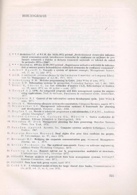 Petre VASILESCU, Victor DUNCA - Proiectarea sistemelor informatice, cadru general, studiu de caz, Editura tehnica, Bucuresti, 1979, 324pg