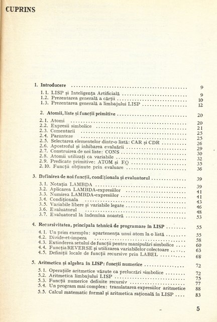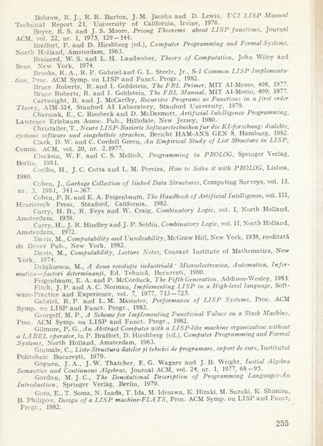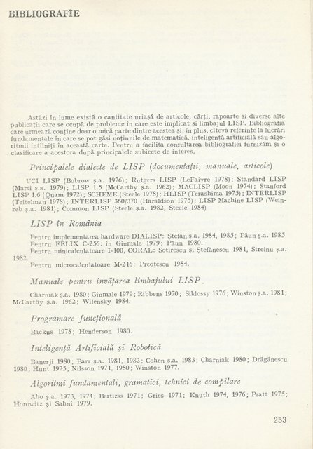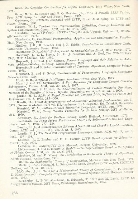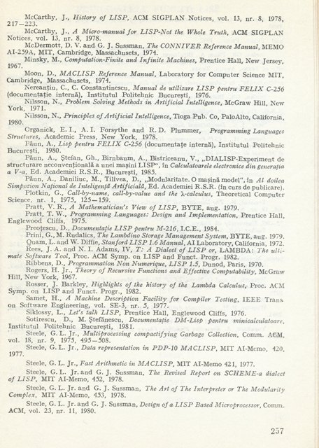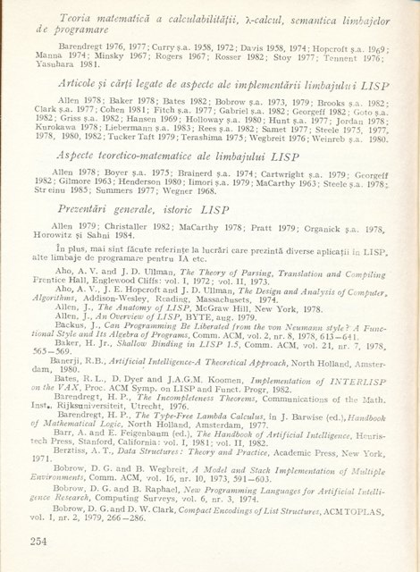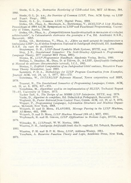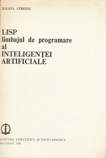 Ileana STREINU - LISP, limbajul de programare al inteligentei artificiale, Editura Stiintifica si Enciclopedica, Bucuresti, 1986, 262pg.