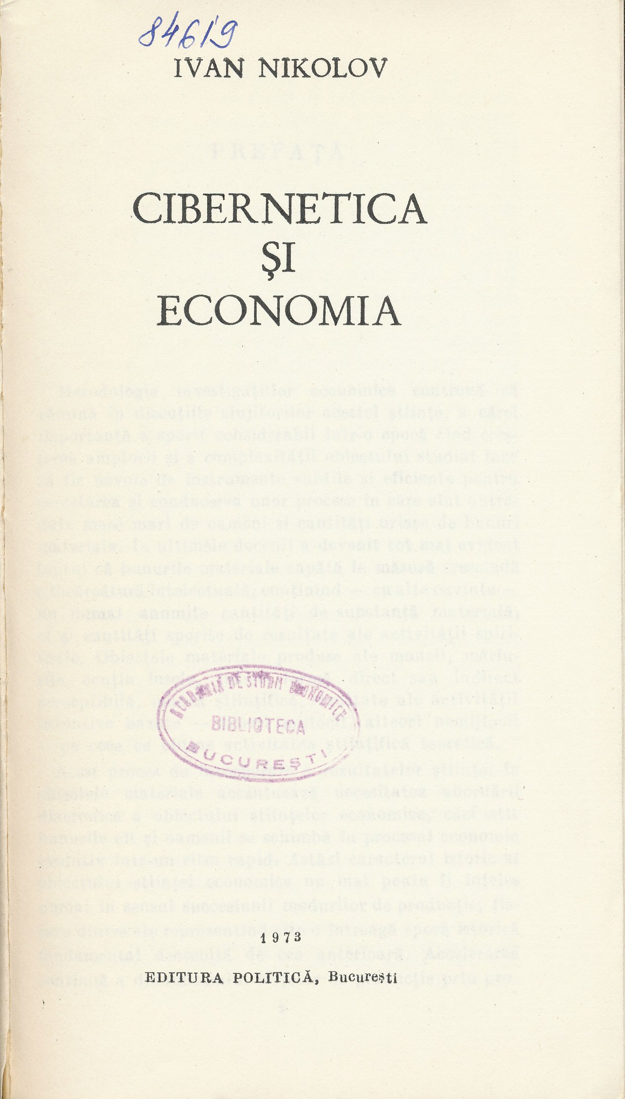 Ivan NIKOLOV - Cibernetica economica, Editura Politica, Bucuresti, 1973, 358pg.