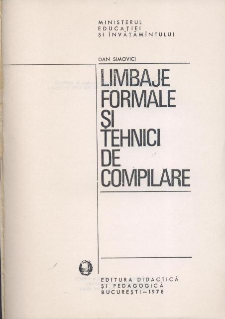Dan SIMOVICI - Limbaje formale si tehnici de compilare, Editura Didactica si pedagogica, Bucuresti, 1978.
