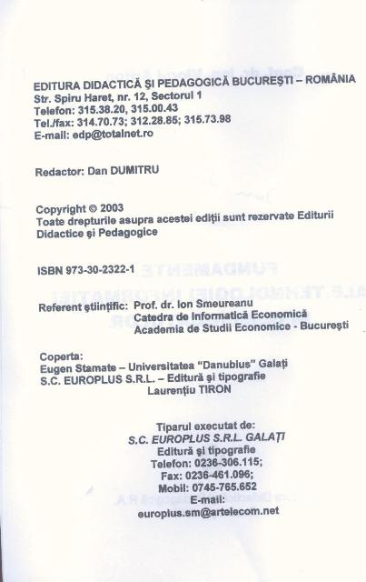 Viorel ARITON - Fundamente ale tehnologiei informatiei si comunicatiilor, Editura Didactica si Pedagogica, Bucuresti, 2003, 127pg.