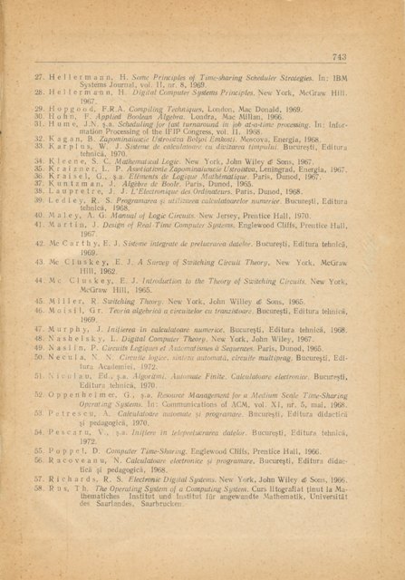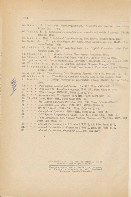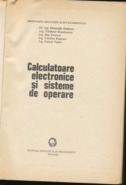 Gheorghe DODESCU, Vladimir DUMITRESCU, Dan IONESCU, Cristian POPESCU, Cornel TUDOR - Calculatoare electronice si sisteme de operare, Editura Didactica si pedagogica, Bucuresti, 1974, 744pg.