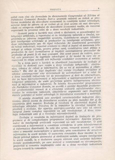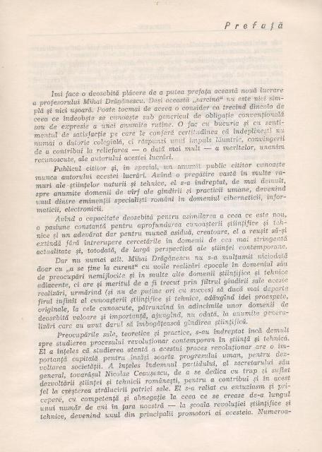 Prefata apartine lui Valter ROMAN, vechi militant comunist si tatic al lui Petre ROMAN, cel care dupa revolutia din decembrie 1989 devenea prim-ministru al Romaniei si care din intamplare era conferentiar si cel mai tanar sef de catedra in Politehnica bucuresteana, laureat cu titlul de conferentiar universitar evidentiat prin 1981, in al carui cuvant de mutumire zicea niste chestii foarte interesante si laudacioase la adresa iubitului fiu.
