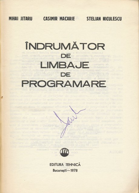 Mihai JITARU, Cazimir MACARIE, Stelian NICULESCU - Indrumator de limbaje de programare, Editura Tehnica, Bucuresti, 1978, 348 pagini