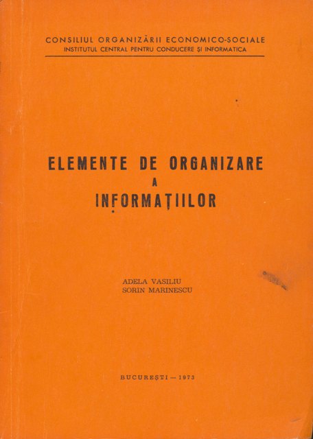 Adela VASILIU, Sorin MARINESCU - Elemente de organizare a informatiilor, ICI, Bucuresti 1973, 77pg