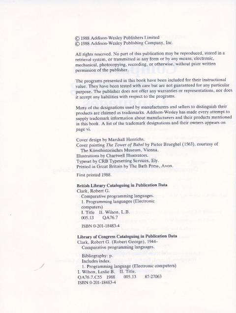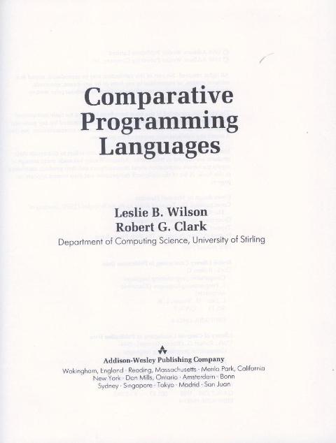 Leslie B. WILSON, Robert G. CLARK - Comparative Programming Languages, Addison - Wesley Publishing Company, New York, 1988, 379pg, ISBN: 0-201-18483-4