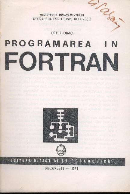 Petre DIMI - Programarea in FORTRAN, Editura didactica si pedagogica, Bucuresti, 1971, 297 pg