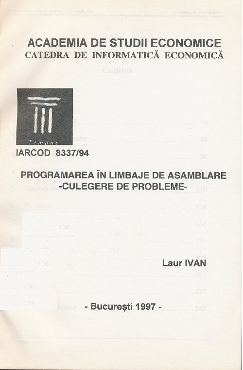 Laur IVAN -Programare in limbaje de asamblare. Culegere de probleme. Editura ASE, Bucuresti, 1997, 254pg
