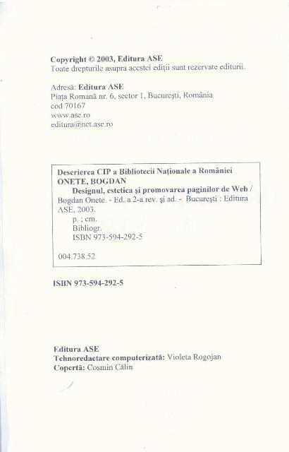 Bogdan ONETE - Designul, estetica si promovarea paginilor wev, Editura ASE, Bucuresti, 2003, ISBN: 973-574-292-5.