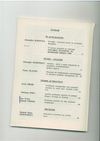 | Ion IVAN, Andrei GOGA – Utilizarea metodelor informaticii in analiza activitatii economice a intreprinderii, Revista de Statistica, nr. Revista de Statistică nr. 1/19891995
