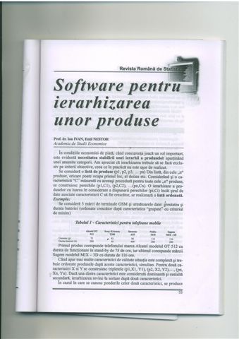 | > | Ion IVAN, Emil NESTOR - Software pentru ierarhizarea unor produse, Revista Romana de Statistica, vol. 14, nr. 2, 2004, pg. 53 - 652004