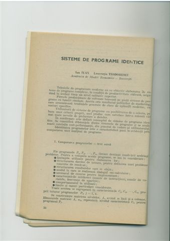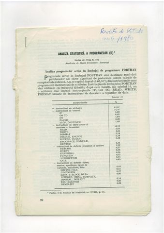 | | Ion IVAN – Analiza statistica a programelor - 2, Revista de statistica, nr.5, 1980, pg.22-34