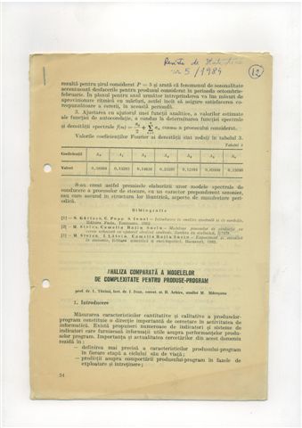 | 1985 | > | Ludovic TOVISSI, Ion IVAN, Romulus ARHIRE, Marian MACESANU - Analiza comparata a modelelor de complexitate pentru produse-program, Revista de statistica, vol. 33, nr. 5, 1984, pg 54-641987