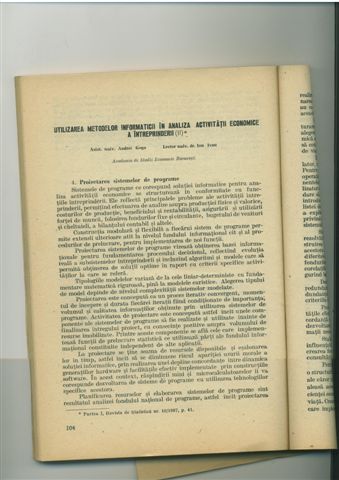 | Ion IVAN, Andrei GOGA – Utilizarea metodelor informaticii in analiza activitatii economice a intreprinderii, Revista de Statistica, nr. Revista de Statistică nr. 11-12/1987, pg. 104 - 110