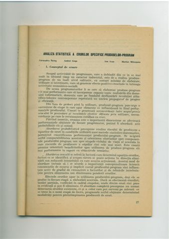 | 1985 | > | Al. Balog, A. Ivan, M. Macesanu: Analiza statistică a erorilor specifice produselor-program, Revista de statistică nr. 10/1985, Bucureşti, pg. 27-37