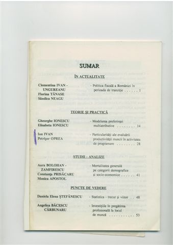 | Ion Ivan, Petrişor Oprea, Particularităţi ale evaluării productivităţii muncii în activitatea de programare, Revista Româna de Statistică, vol. 35, nr. 11, 1996, pg. 28-40.