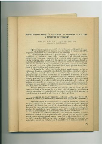 | Ion IVAN, Andrei GOGA – Productivitatea muncii in activitatea de elaborare si utilizare a sistemelor de programe, Revista de Statistica, nr. 4-5, 1987, pg. 75 - 90