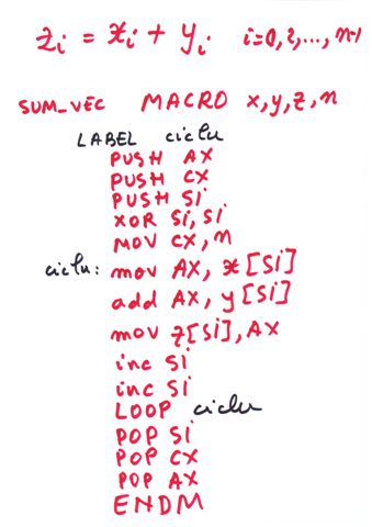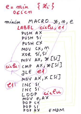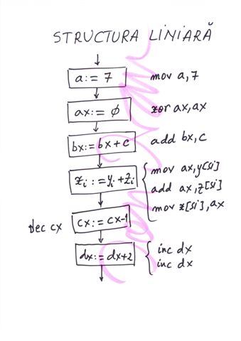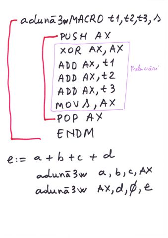 | Delimitator sfarsit de bloc | ENDP, END, ENDM, ENDS | } |