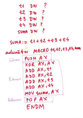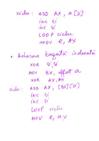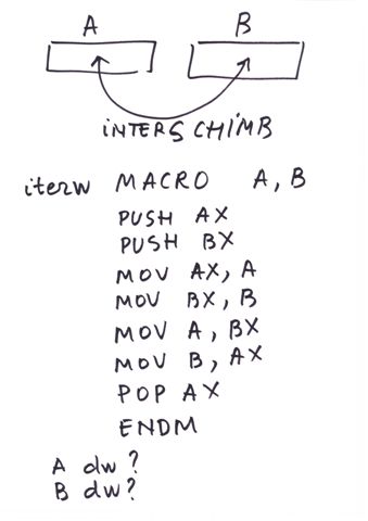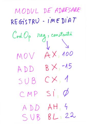 | Referire registri | prin nume AX, BX,CX,DX,SI,DI | prin tipul de data definit |