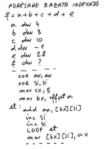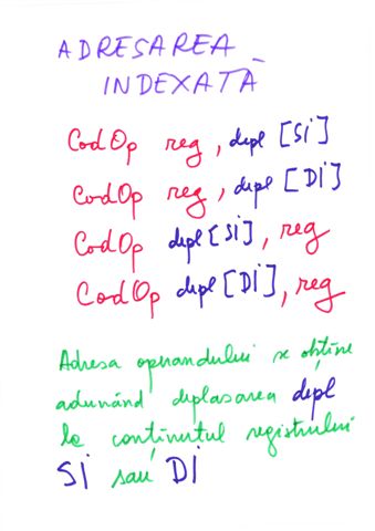 | depl[BP][SI] | Adresare bazata indexata | 010 |