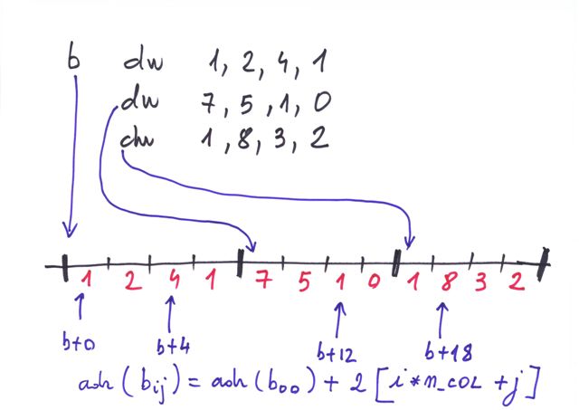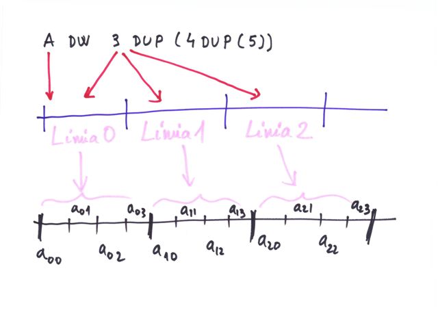 | Definire masiv biidimensional | nume tip const1 DUP(const2 DUP(lista valori)) | tip nume[const1][const2] |